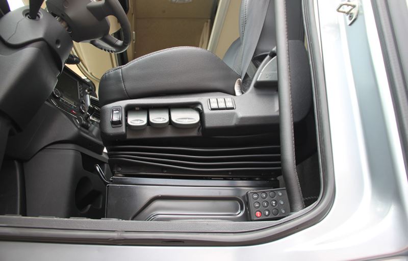 Кабіна центральний замок, електричні склопідйомники, дзеракала (з підігрівом), круїз-контроль, кондиціонер, датчик тиску шин, датчик зносу гальмівних колодок, система попередження про вихід зі смуги руху (LDWS)